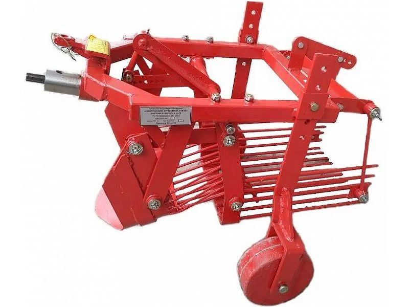 Картофелекопалка состоит из рамы, кронштейна-навески, которая приводит в движение лемех и лоток. Изменение наклона лотка осуществляется кронштейном-тягой. Регулировка глубины выкопки производится переустановкой колеса со стойкой, а также путем изменения расположения четырех болтов (по два болта с каждой стороны) в отверстиях лемеха и регулировочной пластины. Во всех точках, воспринимающих циклическую ударную нагрузку, установлены резинометаллические шарниры, которые обеспечивают снижение общей вибрации картофелекопалки.