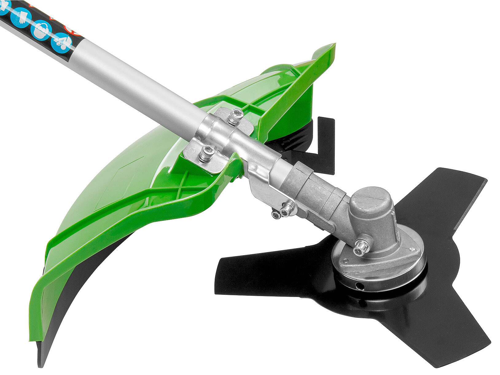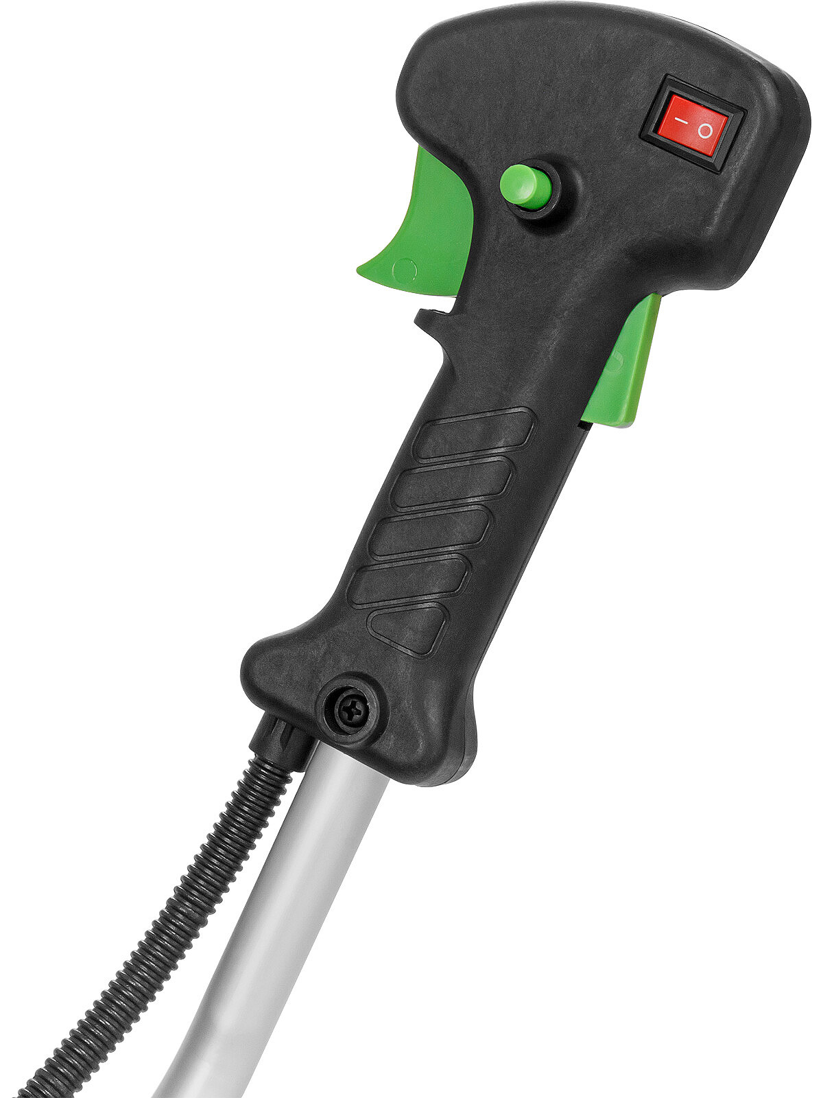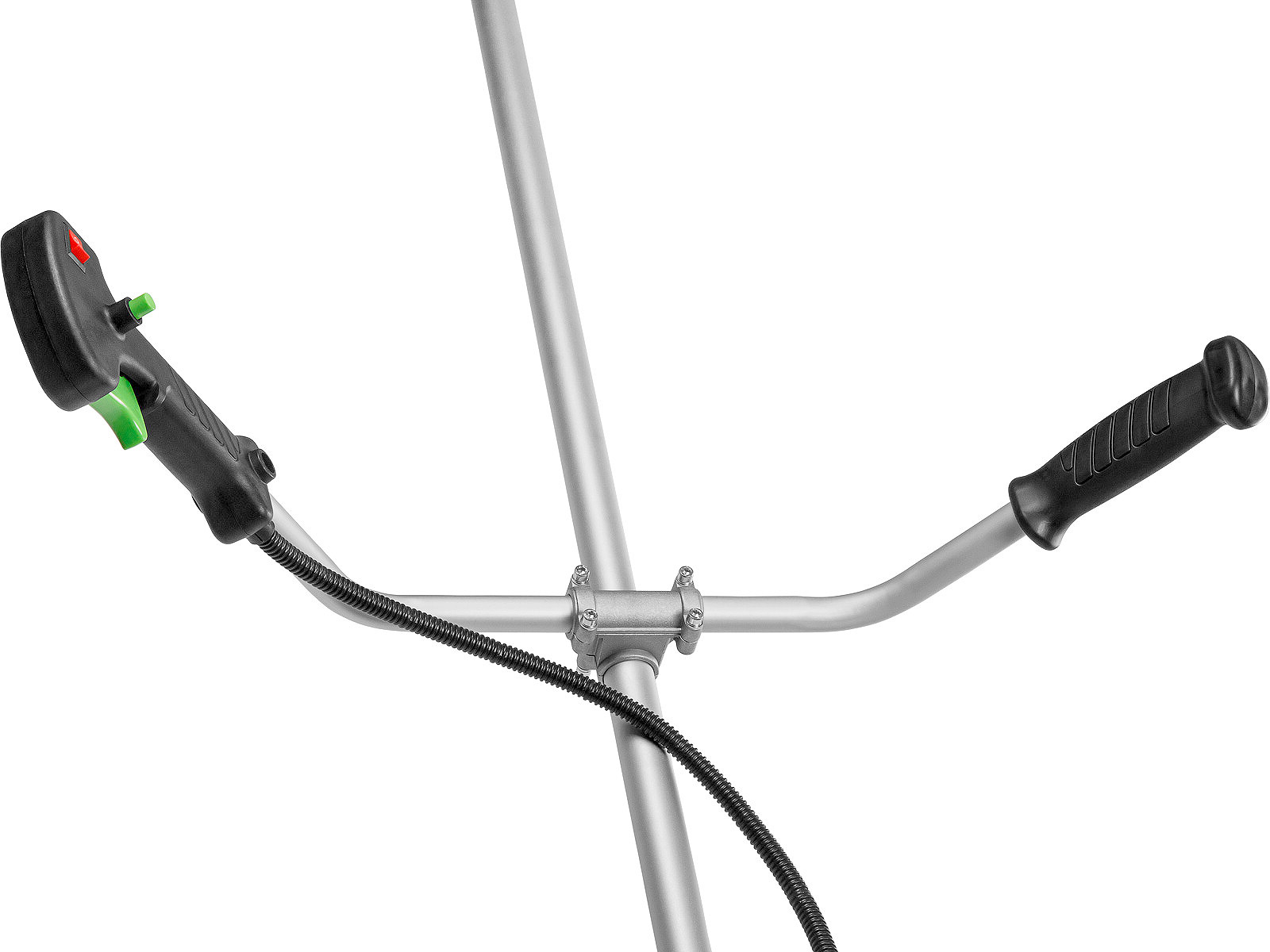 Редуктор, крепление ручки и сцепление не установлены на штангу, необходимо установить все части самостоятельно.
