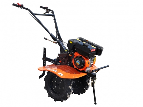 Бензиновый · 7,5 л.с. · 5,52 кВт · 2/1 · Ременной · Постоянно выключенное, механизм включения - натяжной ролик для клинового ремня · Шестеренчато-цепной · Нет ВОМ · 6-гранная, 23 мм · Нет дифференциала · Фрезы в комплекте · Колеса 4,00-10