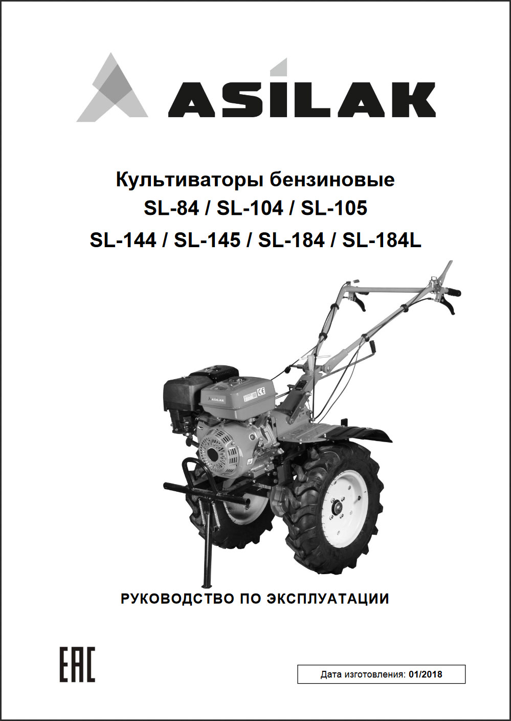 Культиватор бензиновый ASILAK SL-105 (10.0 л.с., шир. 115 см, колесо 6.50-12, без ВОМ, передач 2+1, Фара, Инструм. ящик)