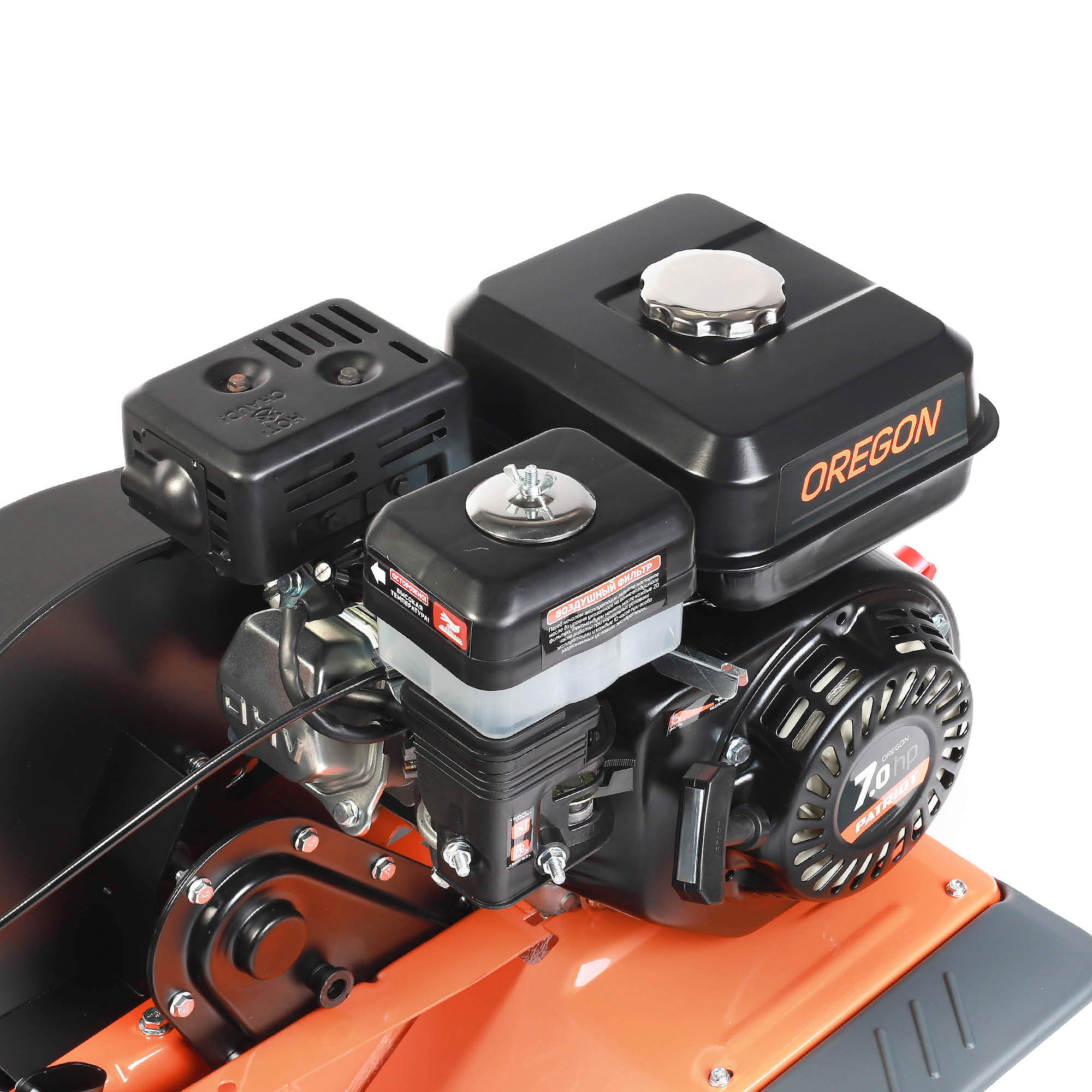 Культиватор Patriot Oregon оснащен одноцилиндровым четырехтактным бензиновым двигателем Patriot P 170 FC мощностью 7 л.с., объемом 208 см3.