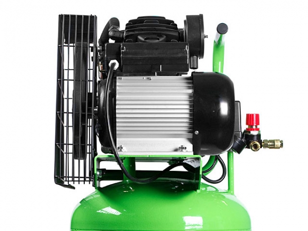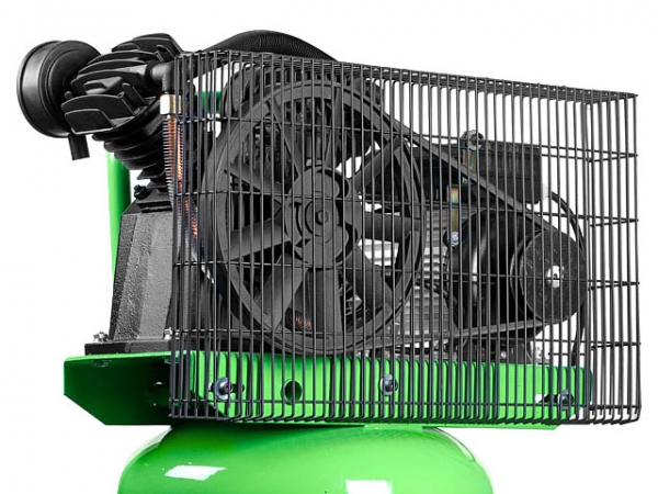 - Меньшая скорость вращения вала компрессорной головы относительно вала электродвигателя намного увеличивает ресурс элементов поршневой группы и наряду с ременной передачей обеспечивает мягкий пуск, что снижает нагрузку на оборудование